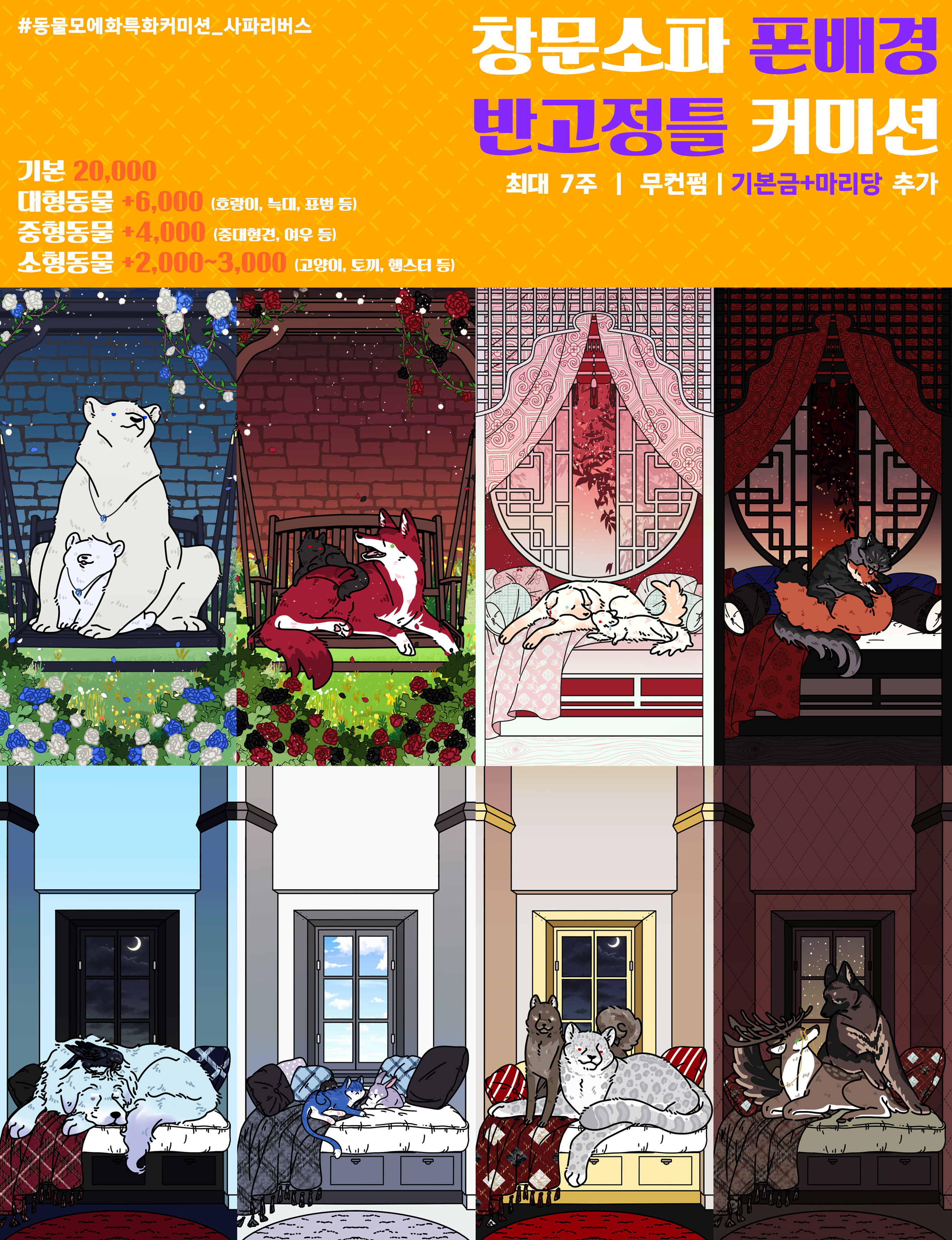 - 배경만 고정인 반고정틀 무컨펌 커미션입니다. 어떤 경우에도 컨펌을 진행하지 않으니 최초 자료 전달 시 누락된 부분이 없는지 꼼꼼히 살펴봐주시길 당부드립니다.